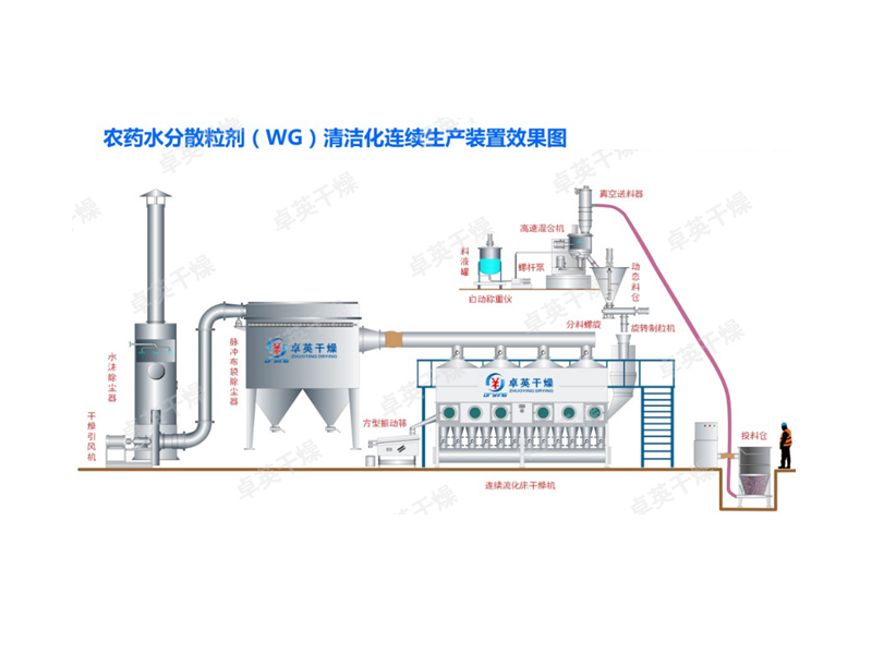 該設(shè)備是我公司為農(nóng)藥水分散粒劑(WG)的清潔化連續(xù)生產(chǎn)所研發(fā)設(shè)計(jì)的一種連續(xù)式干燥機(jī)。農(nóng)藥水分散粒劑(WG)的品種很多,各品種的特性差異也很大,干燥時(shí)所需的干燥溫度、干燥時(shí)間等均不同...